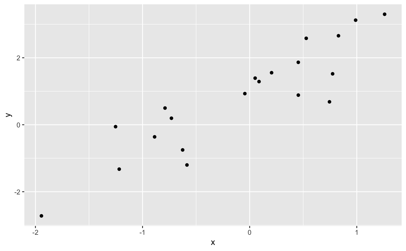 p1 <- ggplot(xy, aes(x = x, y = y)) + geom_point()